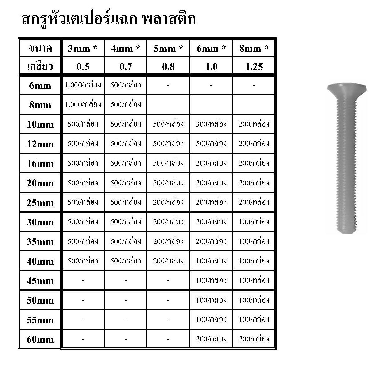 สกรูหัวเตเปอร์แฉก พลาสติก