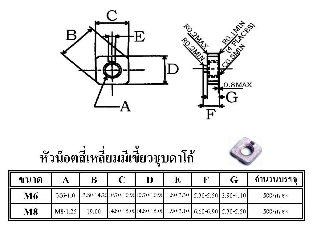 หัวน็อตสี่เหลี่ยมมีเขี้ยวชุบดาโก้