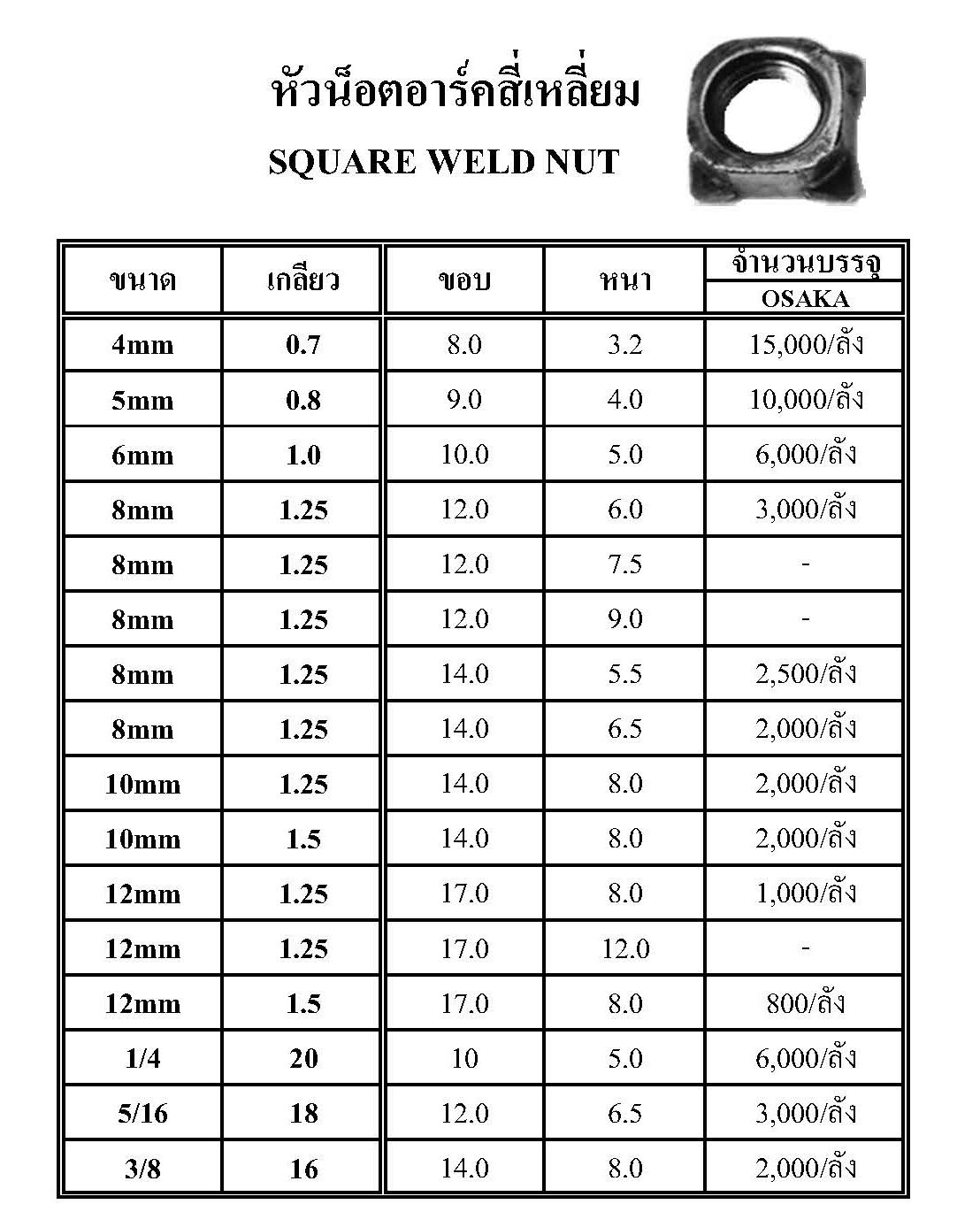 หัวน็อตอาร์คสี่เหลี่ยม SQUARE WELD NUT